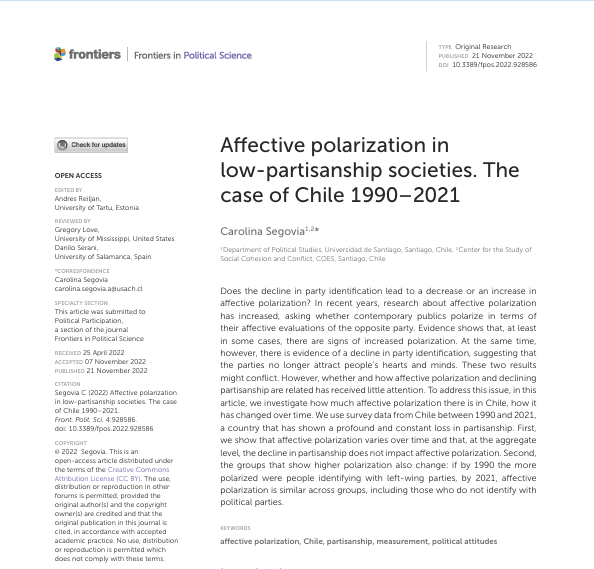 Affective Polarization in Low-Partisanship Societies. The Case of Chile 1990-2021.